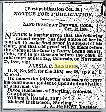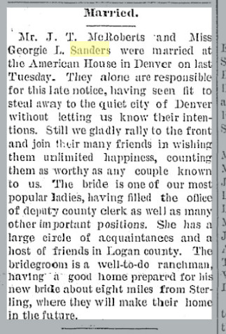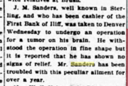 July 1910 " Mrs. Sanders, of Iliff, is visiting her mother,