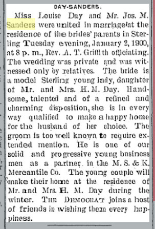 March 1886 Sterling " Messrs. Allen Sanders and Henry Wilson have returned to Sterling from a trip to the Mississippi."