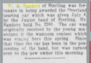 May 1910 "Mrs. Joe Sanders spent Tuesday in Sterling shopping,