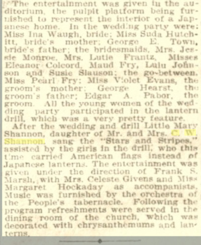 November 1907 Ault "The frieuds of Mr. and Mrs. C. W. Shannon gave