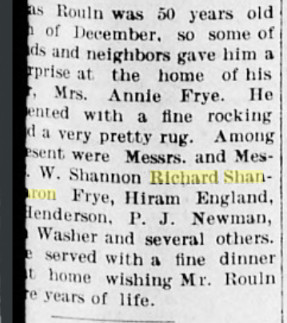 June 1903 "C. W. Shannon moved into the Alkire house last Saturday