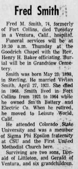 After a trip to Colorado Springs, Mr. and Mrs. Smith will reside in Sterling, where the bridegroom is an electrical engineer. The bride was graduated from the University of Denver and is a member of the Pi Beta Phi sorority. Mr. Smith attended the State Agricultural college and belongs to the Sigma Phi Epsilon fraternity.
