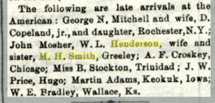June 1890 Greeley "W.M. Henderson and wife of Titusville, Pa., the father