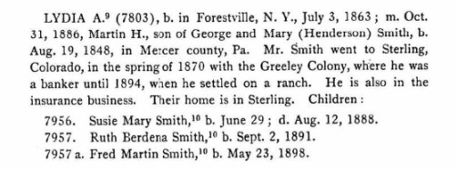 14 years to Lydia A., July 1863 in Pennsylvania. She's had three kids, two living. Ruth B. Sept 1891 and Fred M. May 1898, both in Colorado.