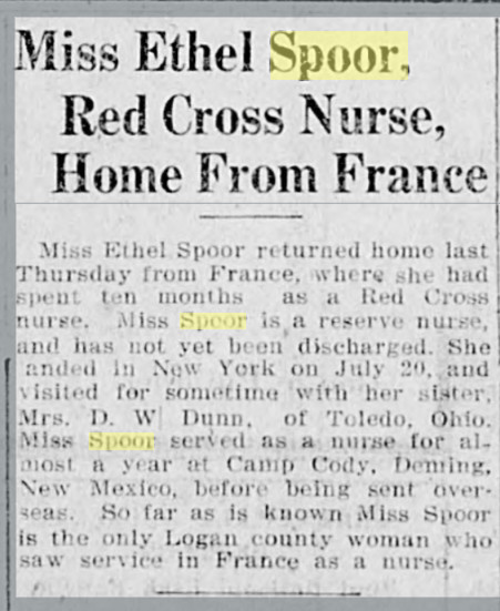 August 1887 Sterling "Hon. A. F. Spoor and wife left on Wednesday for the mountains, foi the benefit of Mrs. Spoor’s health; which has been quite poorly for some time past."