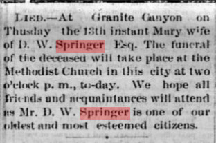 14, 1873 reported Mary Springer's death.