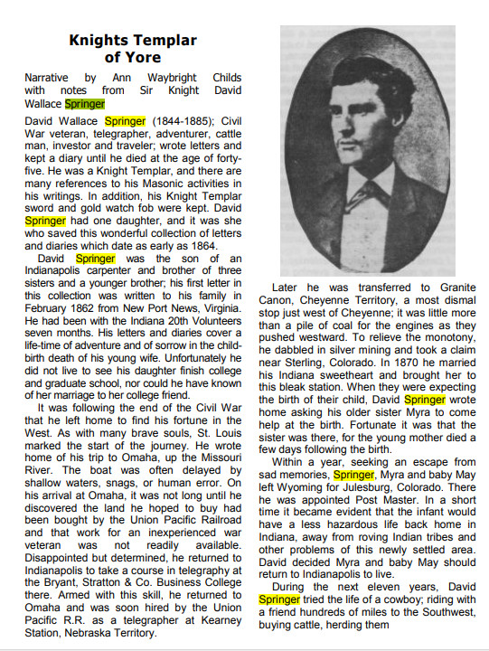 On March 22, 1874 David Springer wrote to his "Dear Papa"