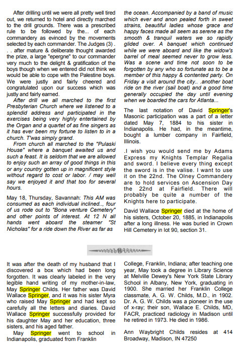 October 27, 1885 Indianapolis " The will of David W. Springer was