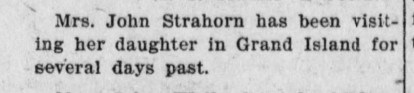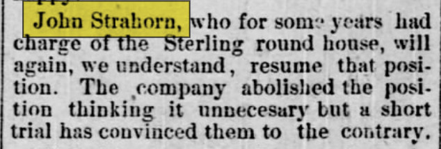 February 1888 Sterling "The young folks had a pleasant party at the residence of Mr. John Strahorn, last Friday evening, and were royally entertained."