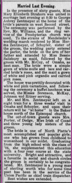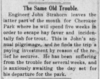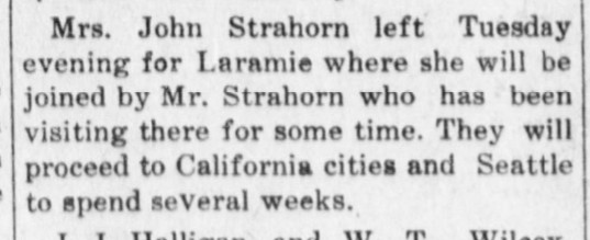 September 1911 North Platte "Mr. and Mrs. John Strahorn have returned from their stay at Cherokee Park."
