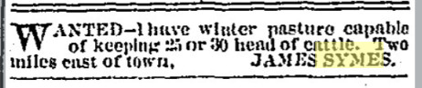 January 1891 Sterling " James Symes spent Christmas with his daughter near Merino."