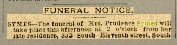 In 1893 Denver, the city directory has Mrs. Prudence A. Symes at