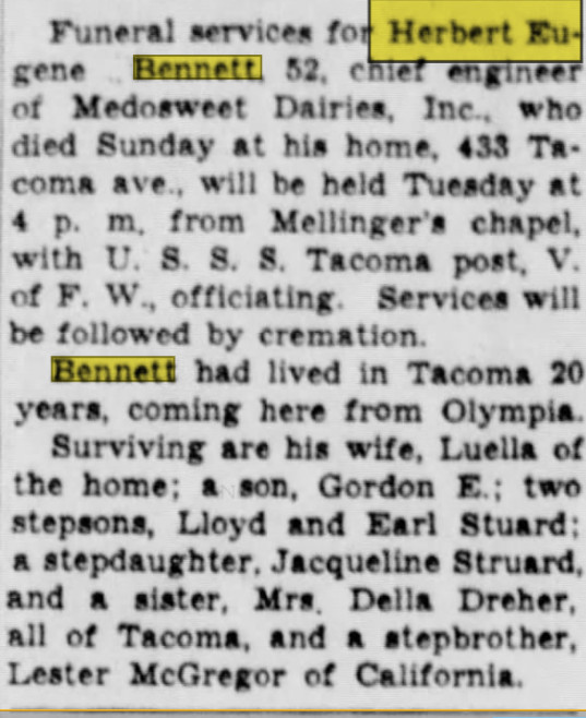 October 1885 Greeley "Mrs. W. H. Bennett has gone to visit her parents at Hamilton, Mo."