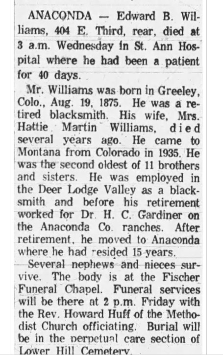 January 1918 "Tom Williams and family spent Sunday in Denver visiting Mrs. Eisner and family. "