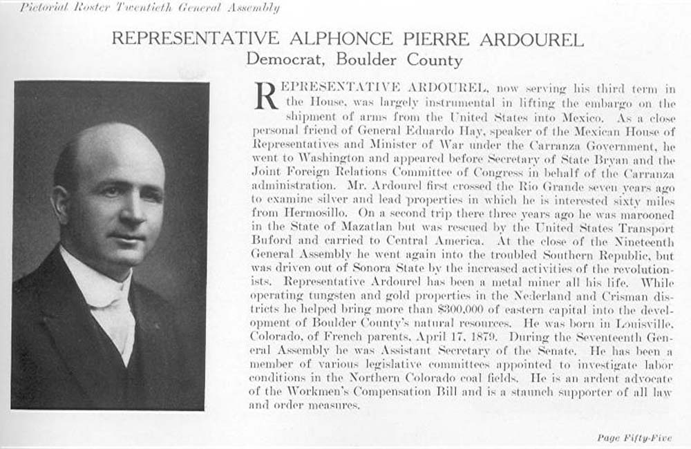 In 1885 Boulder County B. Ardourel is a saloon keeper, 43, Rosena 33, Joseph 13, Emma 9 (born in Nova Scotia), Adolph 5, Alfonso 5, Ailene 3, and Alina 1 - the last four born in Colorado.