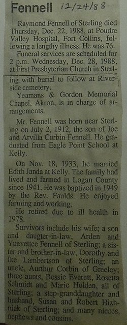 In 1930 Kelly precinct Joseph Fennell is 37, Arvilla 34, both born in Iowa.