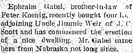 Peter Koenig proved up a quarter in 27, 7N 50W in 1895, and timber-claimed one in 30, 7N 49W in 19033..