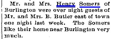 In 1860 DuPage County, Illinois, Fredk Somers is 52, Sarah J. 31, wih Edward 11, C. 9, Geo 6, Henry 4, and Eliza 2.