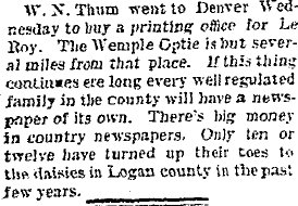 1889 "Osro" A. Thum of LeRoy Colorado was a witness to the claim of Joseph W.