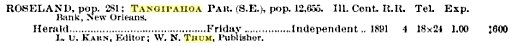 The Roseland Herald was published in 1897 by D.W. Streat.