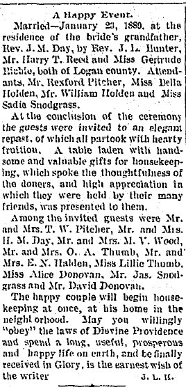 "Mr. Ira Ball leaves this week for his old home in Indiana; his many friends