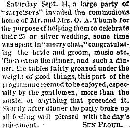 In 1885 Adams County, Nebraska, O.A. Thumb, 45, and Mary C. 41, both