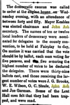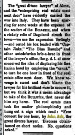 December 1885 Fairplay " Lawyer John Ash has gone on a visit to his home in Illinois."