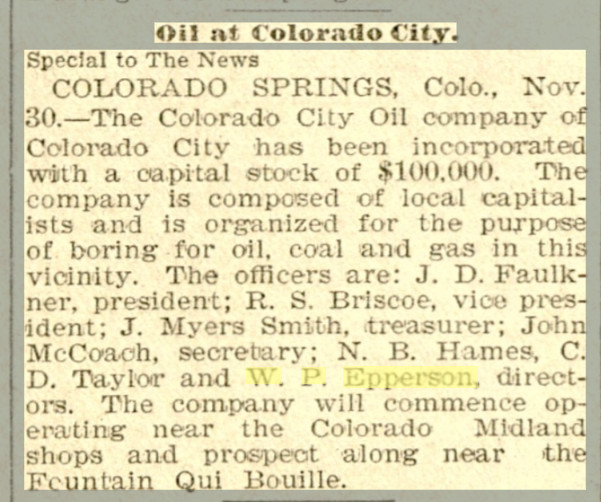 April 1909 Grand Junction "W. T. and C. A. Epperson, of Colorado City,