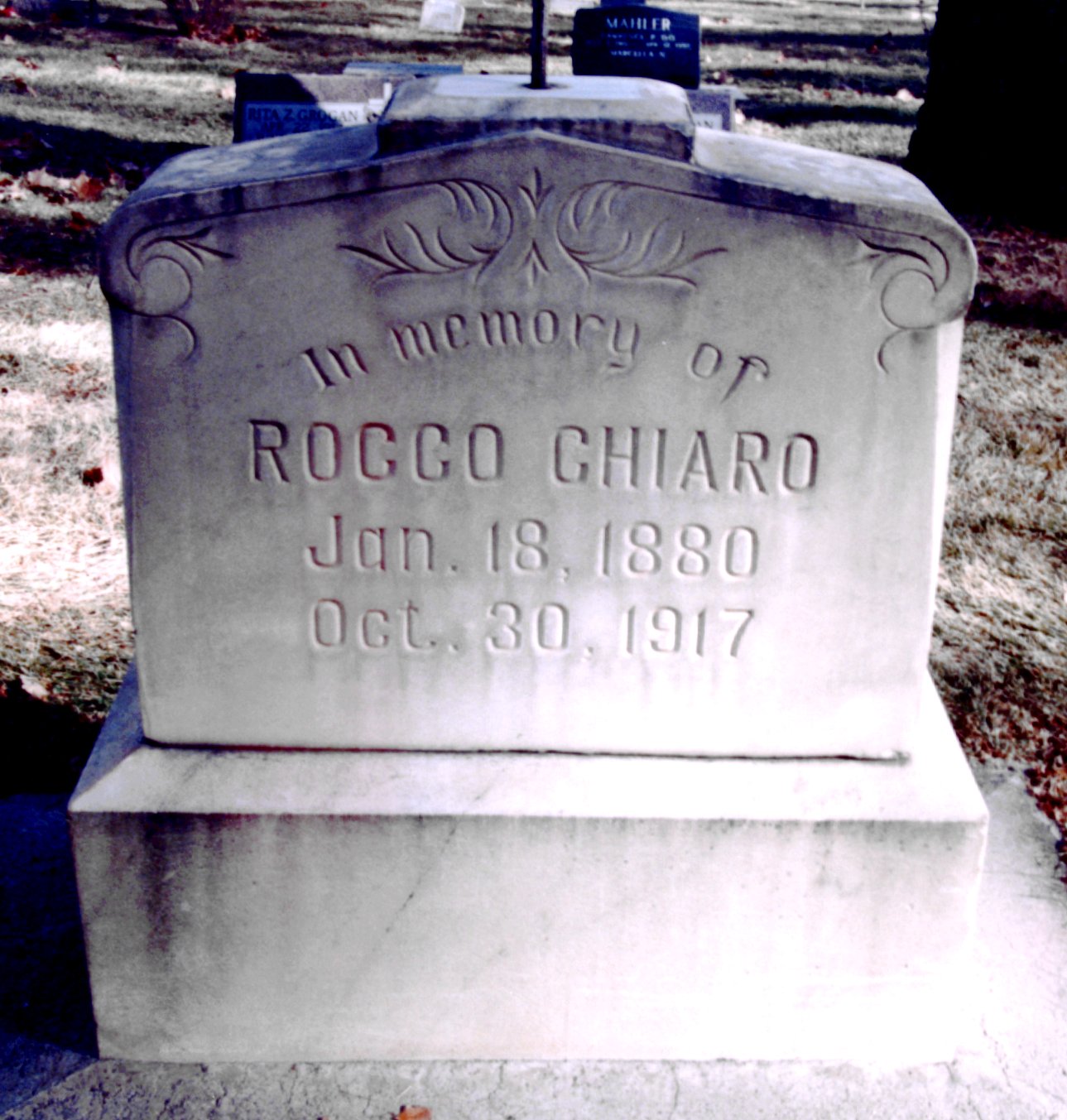 | Chiaro, Rocco 1880-1917 GS 4 Lot 1 Block 84 [Mary at SmilinHeavy@aol.com] | |