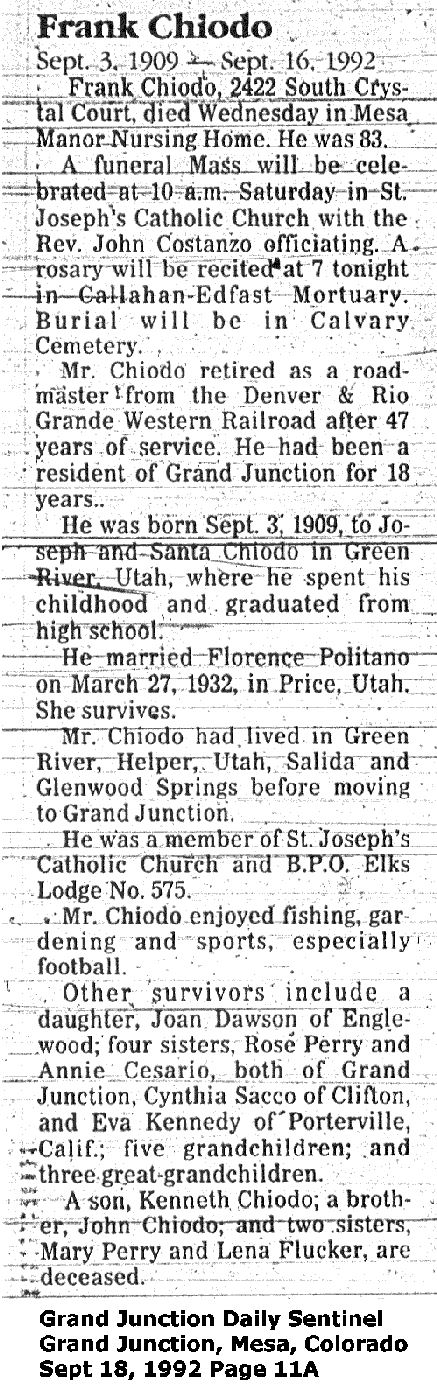 | Chiodo, Frank 1909-1992 Obituary | |
