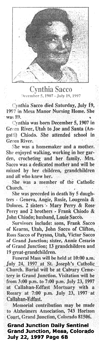 | Sacco, Cynthia 1907-1997 Obituary | |