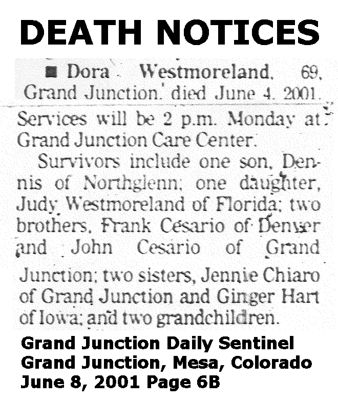 | Westmoreland, Dora Died 2001 Obituary | |