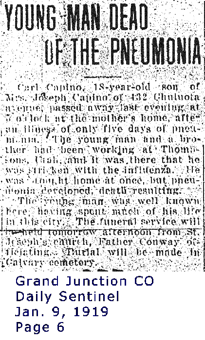 Capino, Carl 1901-1919 Obituary