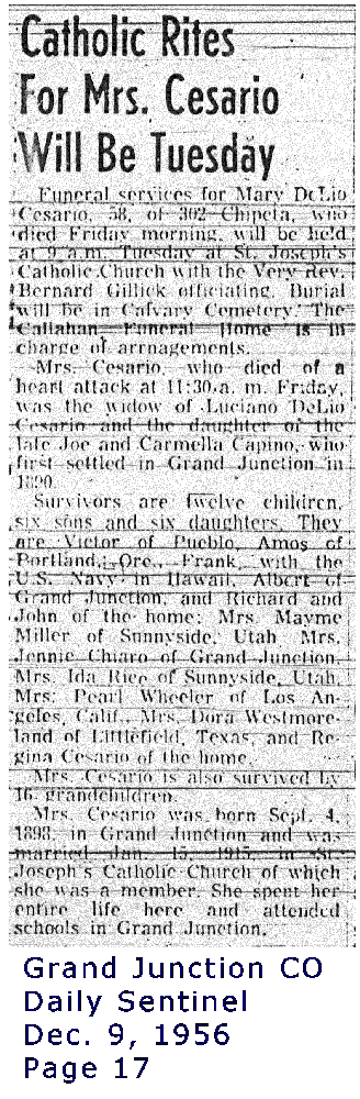 Obituary Cesario, Mary 1898-1956 Obituary [Mary at SmilinHeavy@aol.com] |