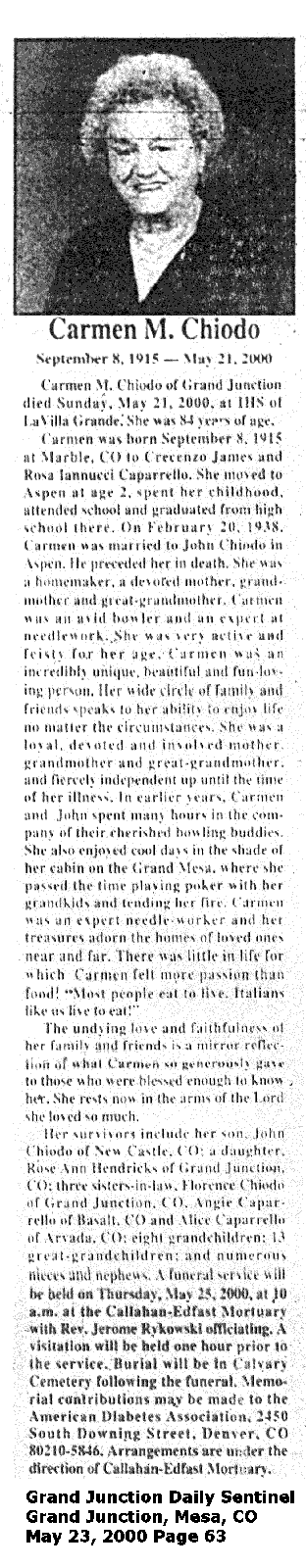 | Chiodo, Carmen 1915-2000 Obituary | |