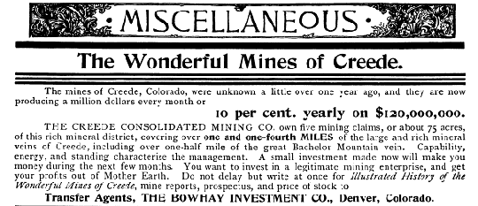 Advertisement for the Wonderful Mines of Creede