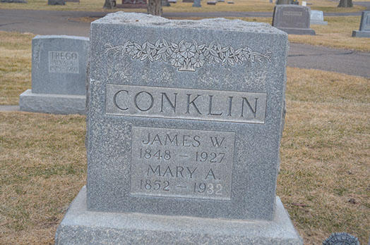 To Mr. and Mrs. Conklin were born seven sons and four daughters. Four sons died in infancy. Those surviving their mother are James F., John H., and George C. Conklin, Mrs. Edith Kinch, Mrs. W.A. White, Mrs. N.J. Show, all of Holyoke, and Mrs. D.L. Harmon of Steamboat Springs. Mrs. Conklin is survived also by 31 grandchildren and 8 great grandchildren.