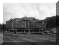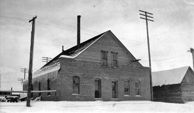 ![]() View of the powerhouse, Steamboat Springs, Routt County, Colorado, in which W. F. Swan had an interest - Mr. Carver ran the power house and was part owner - features the gable-roofed brick building with gauge-arched windows and a smokestack; icicles hang from the eaves. |