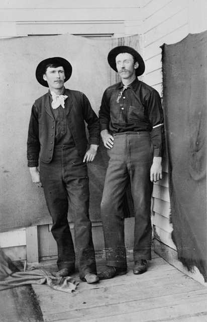![]() J. B. Gray and Robert Bird, early homesteaders, pose in Yampa, Routt County, Colorado. |