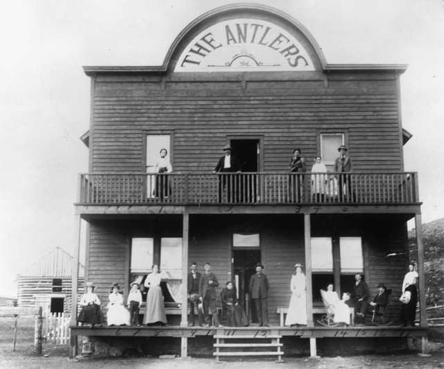 ![]() Hotel Yampa with its famous elk horn fence also residence of Ira Van Camp, who had stage station and livery stable. |