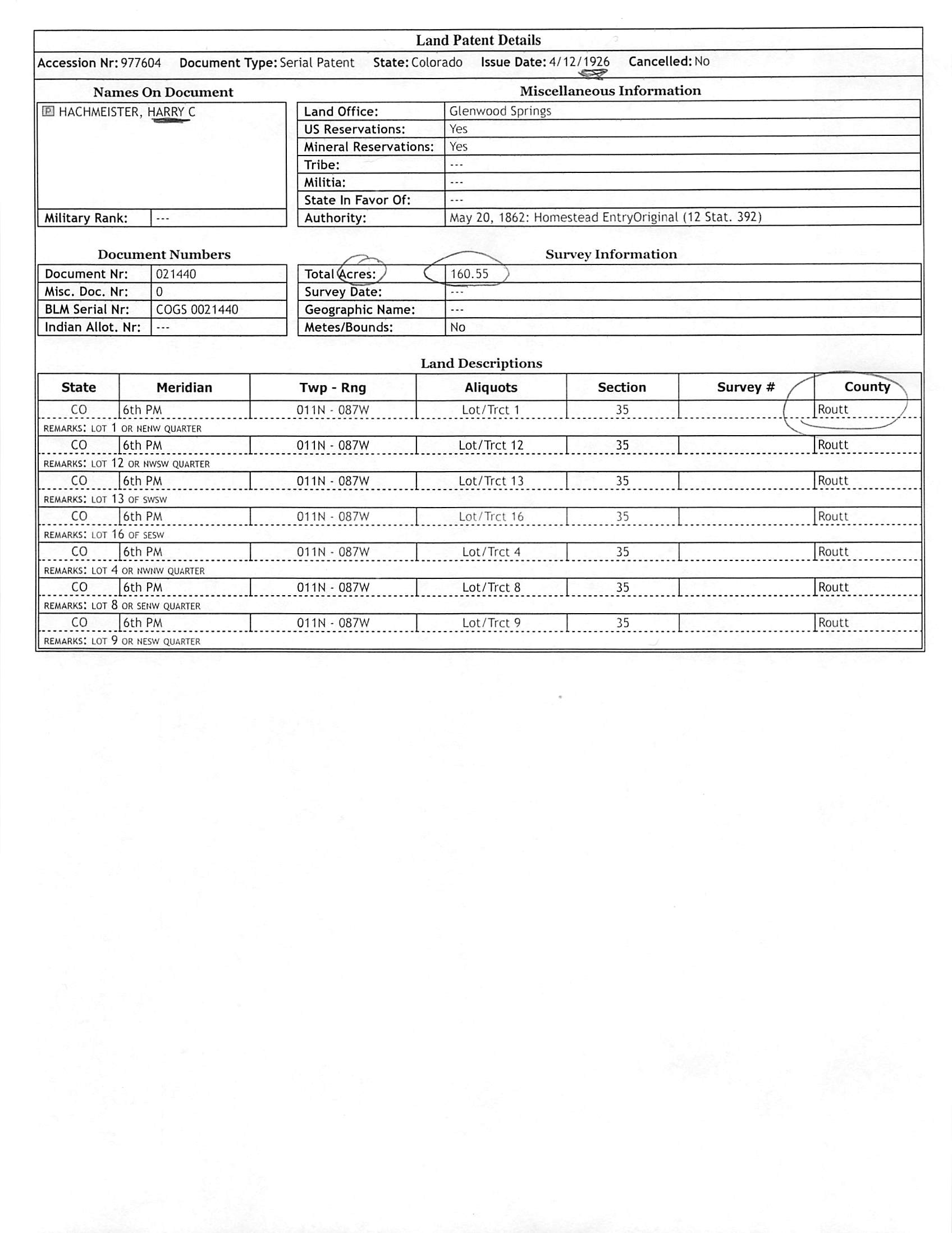 ![]() Portrait of Colorado Territorial Governor John Long Routt (1826-1907), with signature. |
