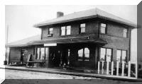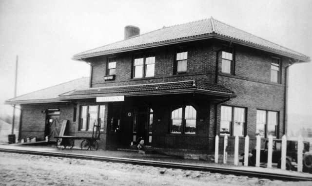 ![]() A luggage wagon is parked on the platform in front of the Hayden, Colorado, train depot in Routt County. |