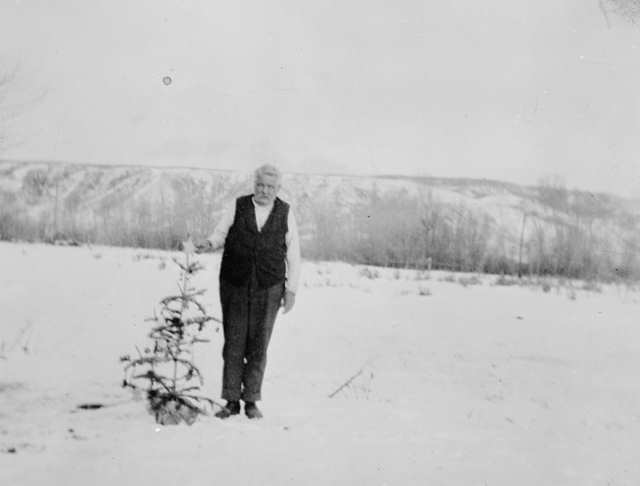 ![]() Mike Cox poses in Yampa, Routt County, Colorado, in the snow, holding the star atop a Christmas tree.