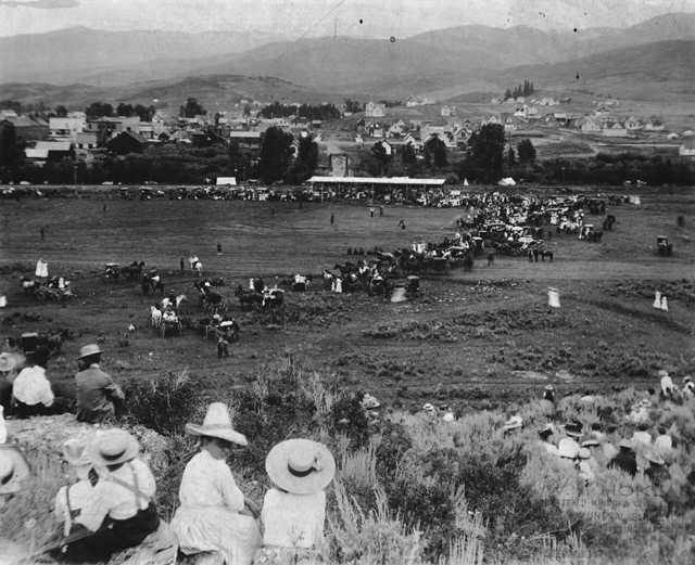 ![]() Steamboat Springs, Colorado Routt County, Pioneer Day celebration taken from Onyx Quarry? Hill toward N.E. / W. I. Hodlas, registered mining & civil engineer, U. S. Mineral Surveyor, engineering, surveying, maps, reports, blueprinting, Steamboat Springs, Colo. |