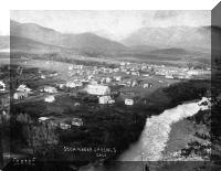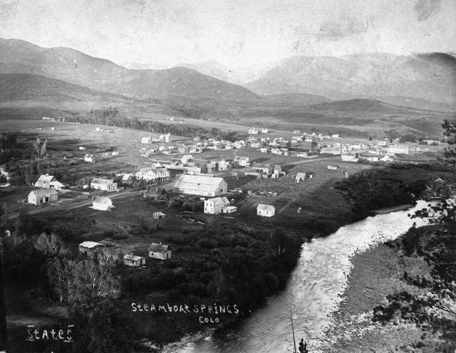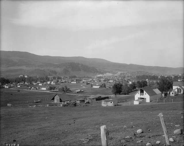 ![]() View over Steamboat Springs, Routt County, Colorado, includes farm houses and barns with hay lofts on the outskirts of town. |