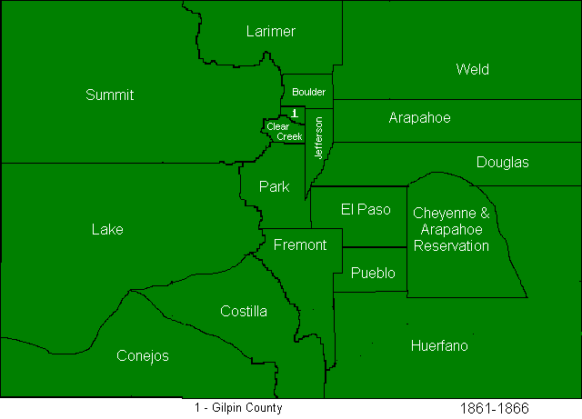 The creation of Greenwood county to finally cover the Cheyenne Reservation also brought with it several other changes. Greenwood took part of Huerfano county, and Pueblo also took a bit of Huerfano county. Huerfano county took the southern half of Fremont county as a consolation for losing so much of the eastern part of the state.