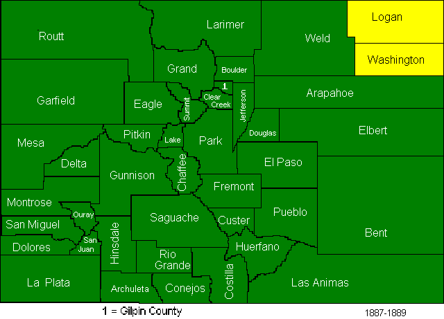 In 1889 the legislature was very busy. The following counties were created: Montezuma, Rio Blanco, Morgan, Sedgwick, Phillips, Yuma, Lincoln, Kit Carson, Cheyenne, Kiowa, Prowers, Otero, and Baca.