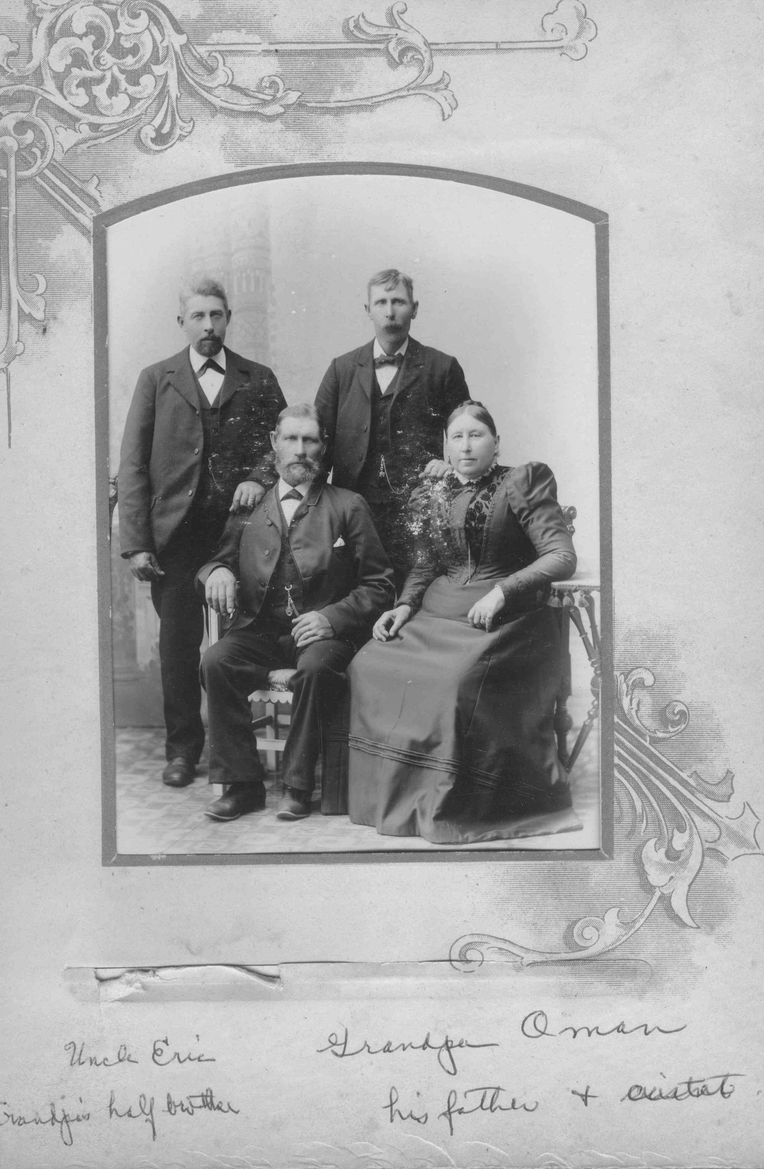 Nels Oman and half-brother Eric Rodin with their father Olof Johan Oman and Eric's mother