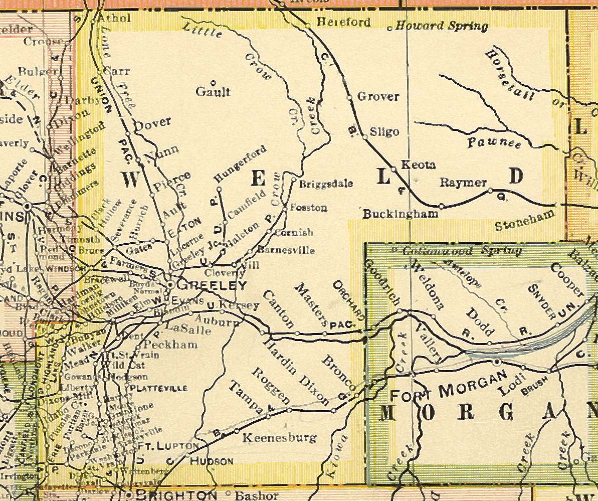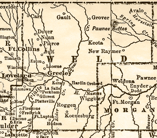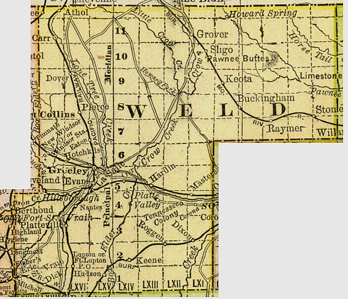 | 1888 Weld County Map | 1895 Weld County Map | 1900 D&RGW Railroad Map | 1905 Weld County Map |