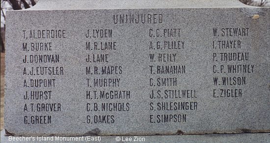 This photograph was taken at the 1901 dedication of the wooden monument that was erected by the Association. The rocks in the center are probably those of the 1898 Scout cairn.